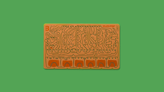 | In der ‘Pease’-Tafel habe ich den Schaltplan im Siebdruckverfahren erstellt und ein Lineal zur besseren Übersicht hinzugefügt. (Bilder mit freundlicher Genehmigung von Boldport.) | |