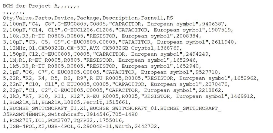 - Beim Generieren von Gerber X3 oder ODB++ Daten aus einem CAD-System wird auch eine BOM-Datei erzeugt, die auf den im CAD-System erstellten und gespeicherten Informationen basiert.