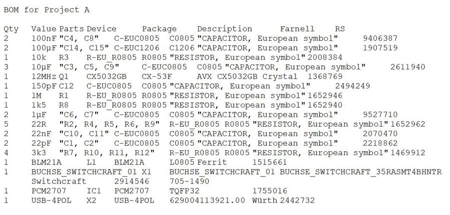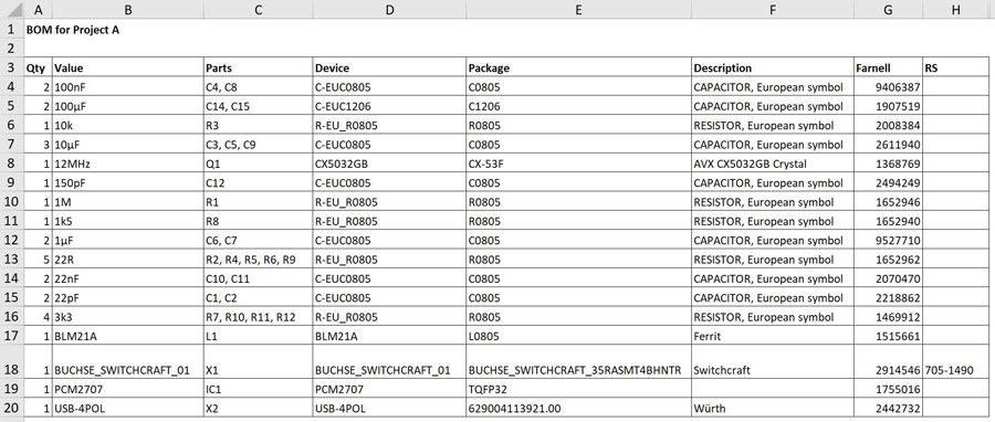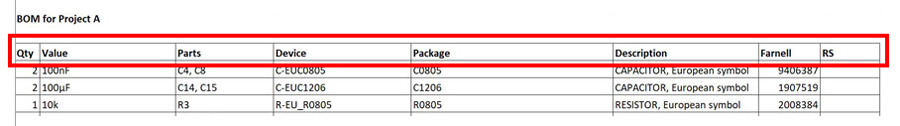 Eine Stückliste muss bei Eurocircuits mindestens diese Daten pro Bauteil enthalten: