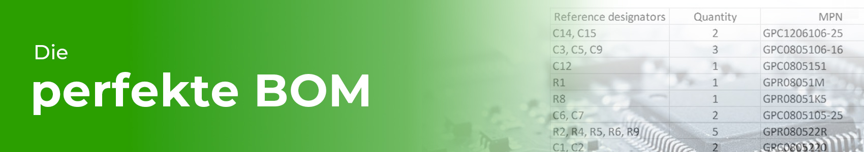 Die BOM (Bill of Material) oder Stückliste ist die Liste, die alle elektronischen Bauteile enthält, um eine Leiterplatte zu bestücken und die elektronische Baugruppe zu fertigen. Anhand dieser zentralen Liste werden die Bauteile eingekauft und für die Leiterplattenbestückung kommissioniert. Damit die Übergabe vom Design in die Fertigung fehlerfrei und reibungslos funktioniert, muss die Stückliste notwendige Informationen enthalten. Hier sind unsere Empfehlungen, was mindestens in die Stückliste gehört und welche Informationen eine perfekte BOM enthalten sollte.