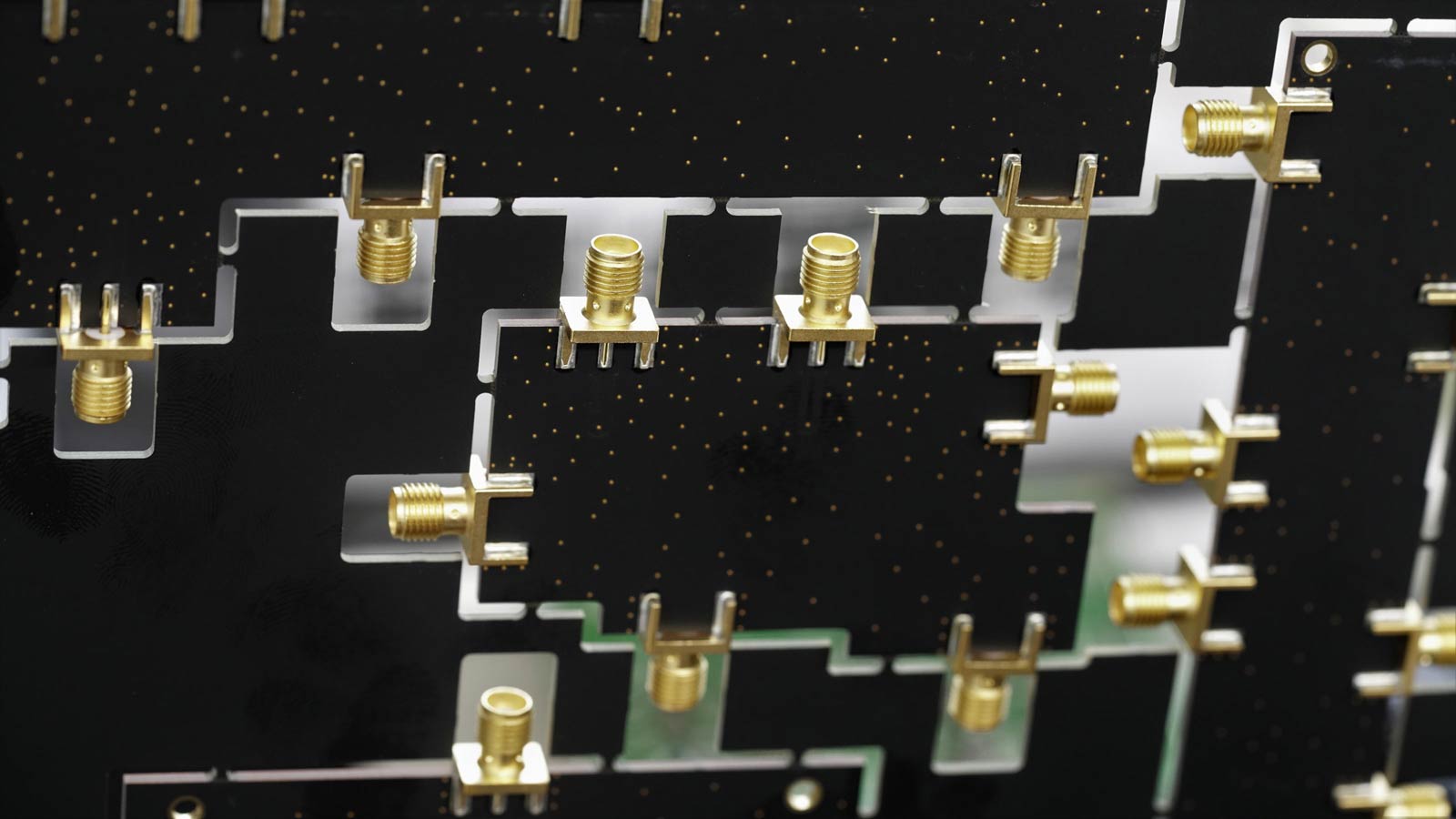 Edge-Launch-SMA-Steckverbinder reichen über den Rand der Leiterplatte und benötigen Platz für die Montage. Wir müssen aufpassen, dass wir den Bruchsteg nicht unter sie legen.