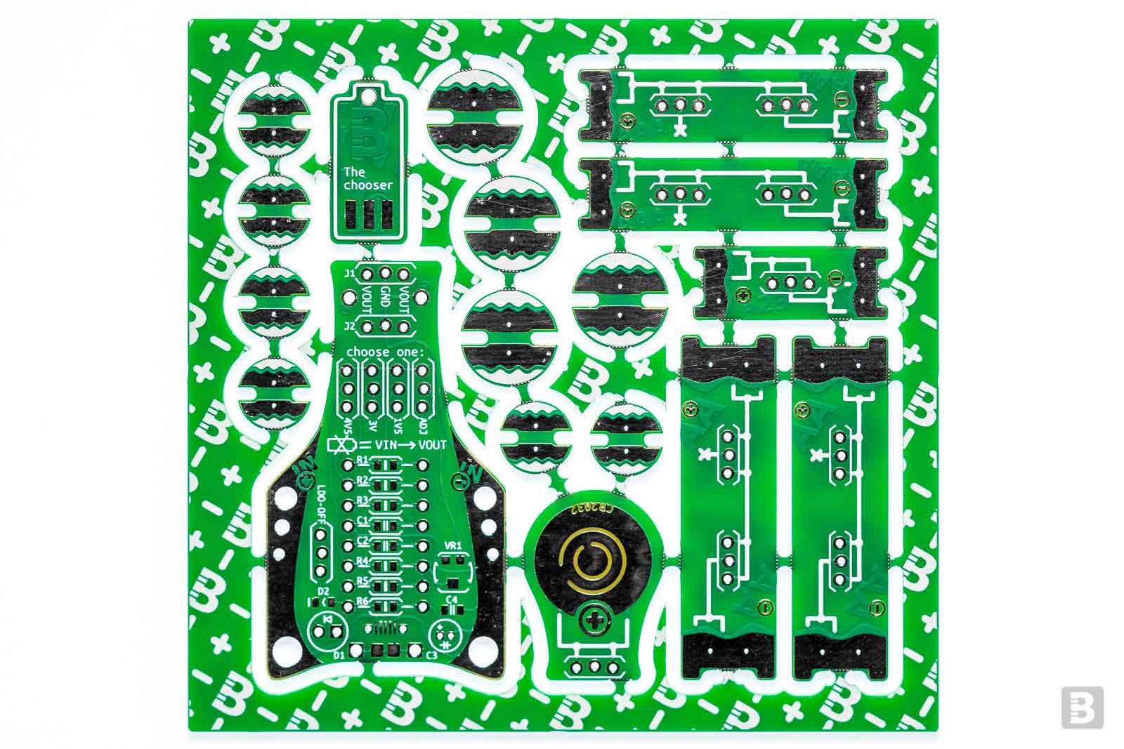Eine Leiterplatte, die mit V-Schnitt-Technik geritzt wurde. Beachten Sie, wie wenig Platz erforderlich ist.