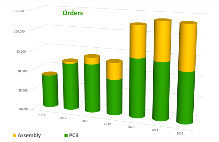 Der neue Gehäuseservice, den wir für 2022 angekündigt haben, bringt uns diesem Ziel näher. Darüber hinaus arbeiten wir auch daran, die Lieferzeiten zu verkürzen. Eine Maßnahme, das Problem der Bauteileverfügbarkeit zu lösen, ist die, dem Kunden die Möglichkeit zu geben, Schlüsselkomponenten aus der Stückliste zu bestellen, bevor das Leiterplattenlayout fertiggestellt ist. Wir nennen diesen Service Bauteilevorbestellung bzw. Parts pre-order (PPO). Beide Dienste werden im Jahr 2023 voll zum Tragen kommen. Darum werden wir diese Neuerungen im “Ausblick auf 2023” im Detail erklären.