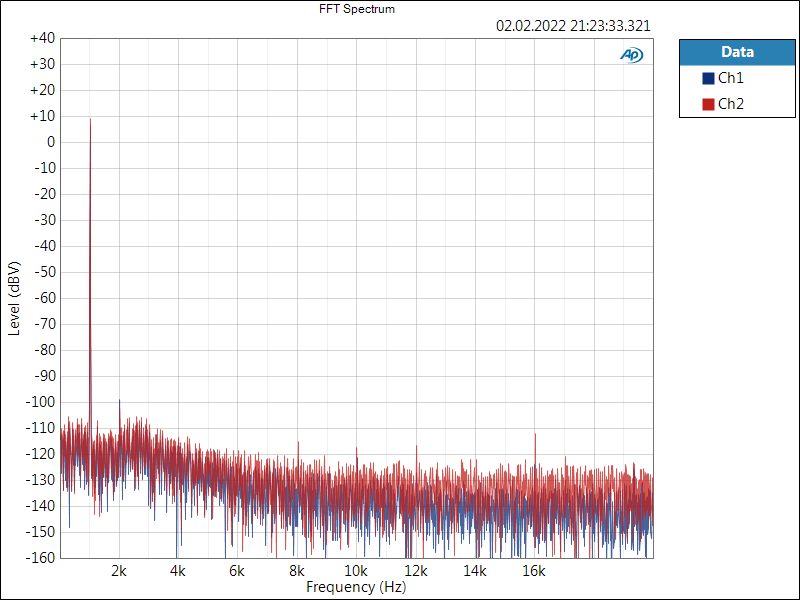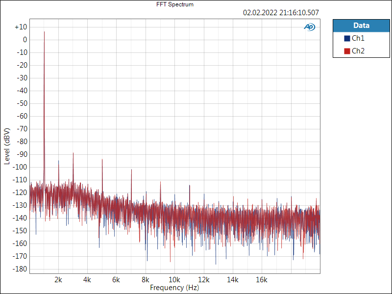 Die überarbeite Ausgangsschaltung mit Film/Folien-Keramikkondensatoren vom Typ FKP 2 der Firma Wima verursacht deutlich weniger Harmonische im Frequenzbereich bis 20 kHz als mit Keramikkondensatoren. Alle anderen Harmonischen gehen im Rauschteppich nahezu unter. Somit sollte angestrebt werden, keine Keramikkondensatoren in analogen Audioausgangsschaltungen zu verwenden.