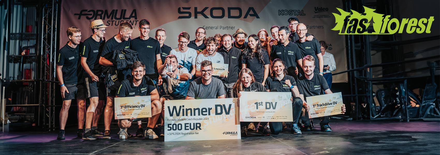 Anfang August ging es für das Fast Forest Team zur FS Czech. Hier musste die Jenny die Disziplinen autonom meistern. Ein erster Platz im Trackdrive, ein zweiter Platz im Engineering Design und zwei dritte Plätze im SkidPad und Autocross bescherten dem Team den ersten Gesamtsieg seit der Vereinsgründung 2008. Die jahrelange Entwicklung des Driverlessteams hat sich endlich bezahlt gemacht und das ganze Team war stolz auf seine Arbeit.