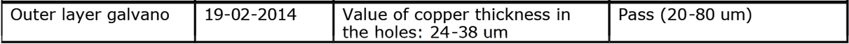 Der Bediener misst die Kupferstärke in mindestens 5 Löchern von einem Nutzen auf dem Gestell. Das Ergebnis wird in den PCB passport eingetragen.