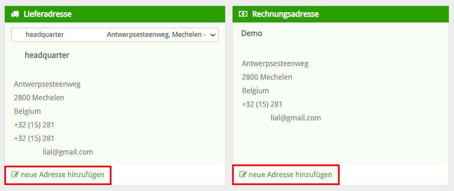- Sie können nur eine Adresse auswählen, die bereits in Ihrem Kundenkonto registriert ist.