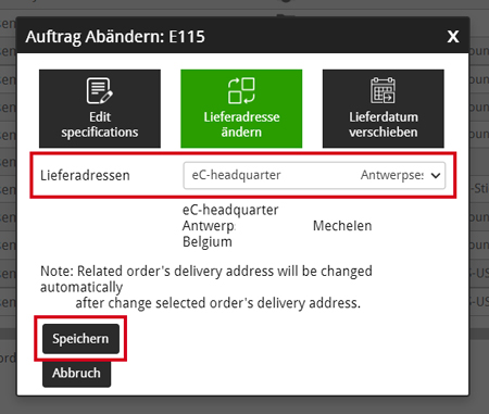 Sobald Sie die neue Lieferadresse ausgewählt haben, klicken Sie auf die Schaltfläche Speichern, um die neue Adresse in der Bestellung zu speichern.