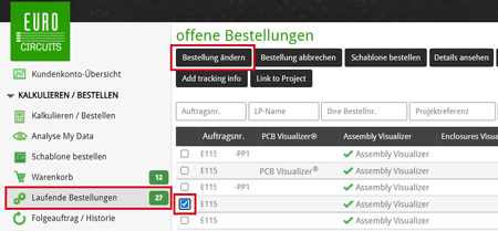 Auftrag für Leiterplattenfertigung und Bestückung ändern
