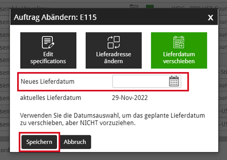 Sobald Sie das neue Versanddatum ausgewählt haben, klicken Sie auf die Schaltfläche Speichern, um das neue Versanddatum in der Bestellung zu speichern.