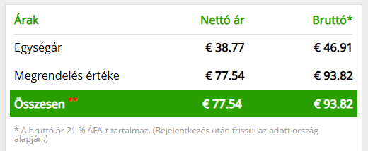 A kalkulátorunkban bármely tétel bruttó ára azt jelenti, hogy az ÁFA-t tartalmazza.