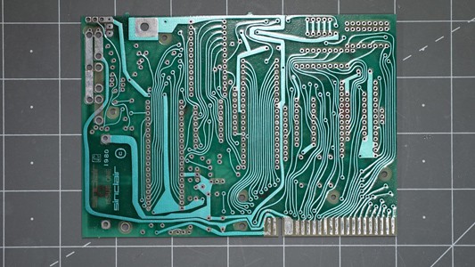 The PCB from the Sinclair ZX-81 board has an appealing organic layout. (Image courtesy of James Lewis, CC BY-SA 4.0)