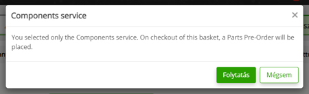 - Amennyiben nem kívánja igénybe venni az Alkatrész szolgáltatást, kattintson a Mégsem gombra.