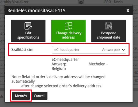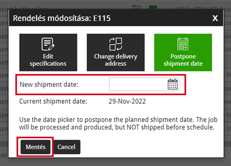 Amennyiben megadta az új szállítási dátumot, kattintson a Mentés gombra, hogy az új szállítási dátum mentésre kerüljön a megrendelésnél!
