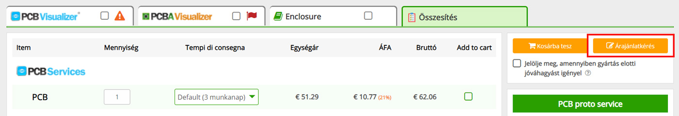 Kattintson az Árajánlatkérés gombra!