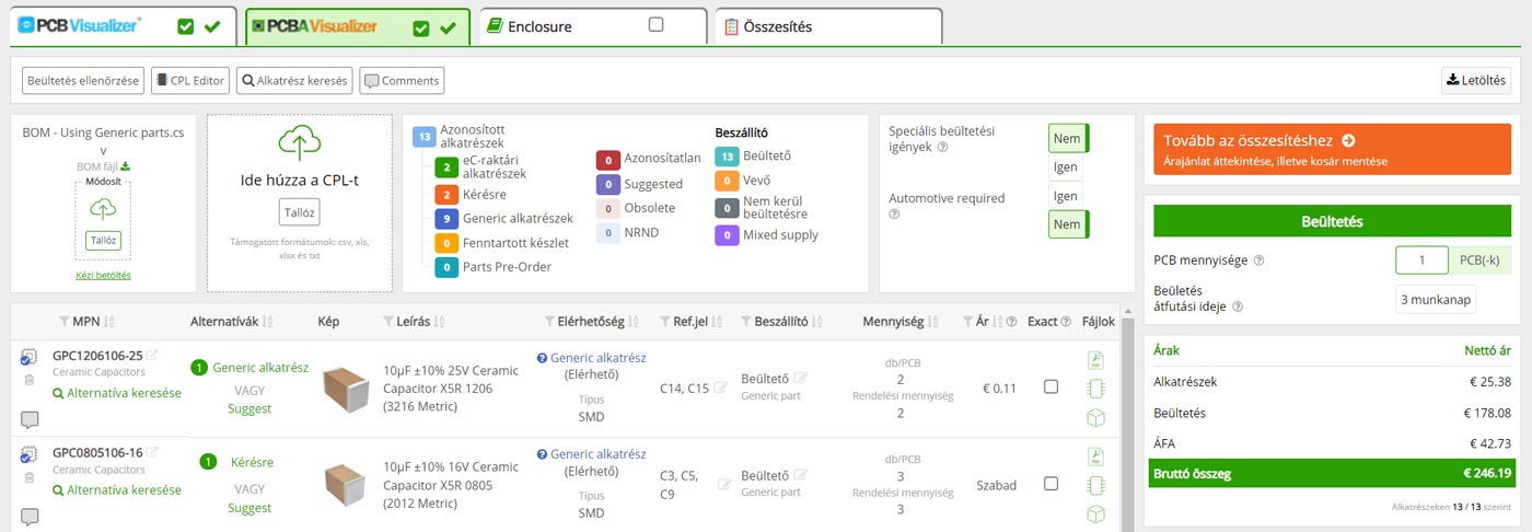 • A teljes PCB elemzés az Eurocircuits felhasználói fiókba történt bejelenkezés után indítható el.