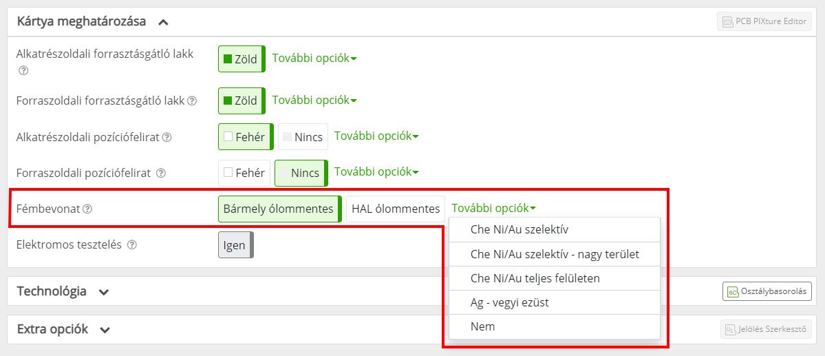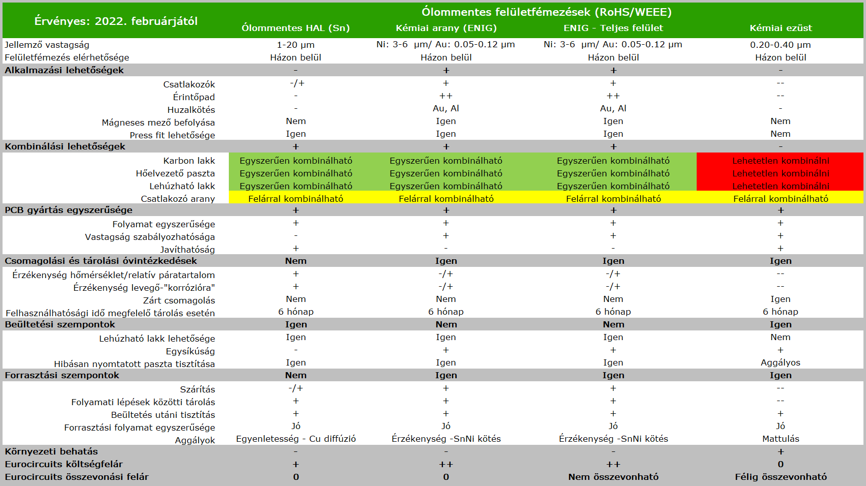 Cégünk háromfajta ólommentes felületfémezést kínál melyek mindegyike RoHS-kompatibilis, de SnPb szerelvényekhez is alkalmasak: