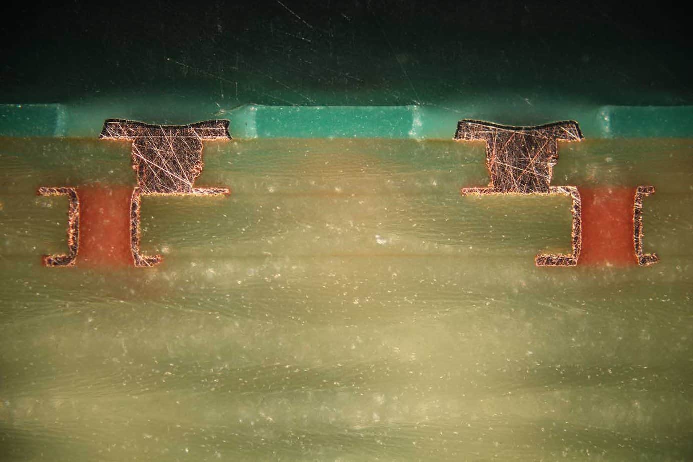 - Az L1-L2 mikroviák lézerrel vannak kialakítva, amit a rá jellemző enyhe kúposság is mutat. Ezeket a viákat a gyártási folyamat során rézzel töltjük fel.