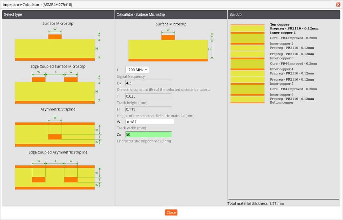 Használja a DEFINED IMPEDANCE pool szolgáltatásunkban található standard rétegfelépítéseket, valamint beépített impedancia kalkulátorunkat, hogy meghatározhassa PCB tervének paramétereit, mielőtt elkezdené a rajzolatkialakítást.