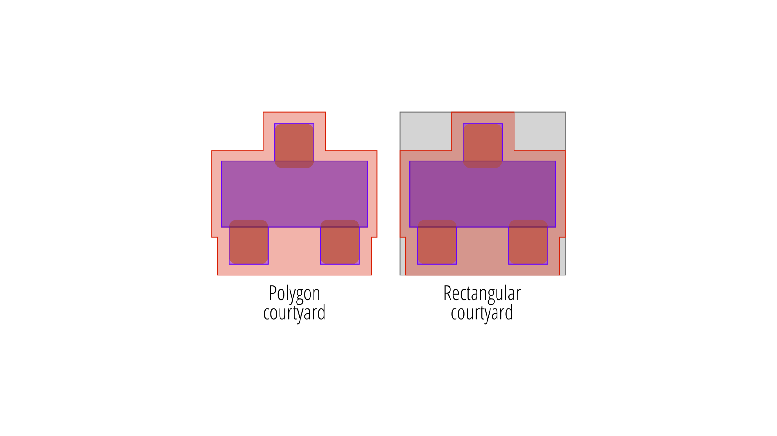 A7-courtyard-excess A courtyard meghatározánál több terület áll rendelkezésre sokszög esetén, mintha téglalapot használnánk.