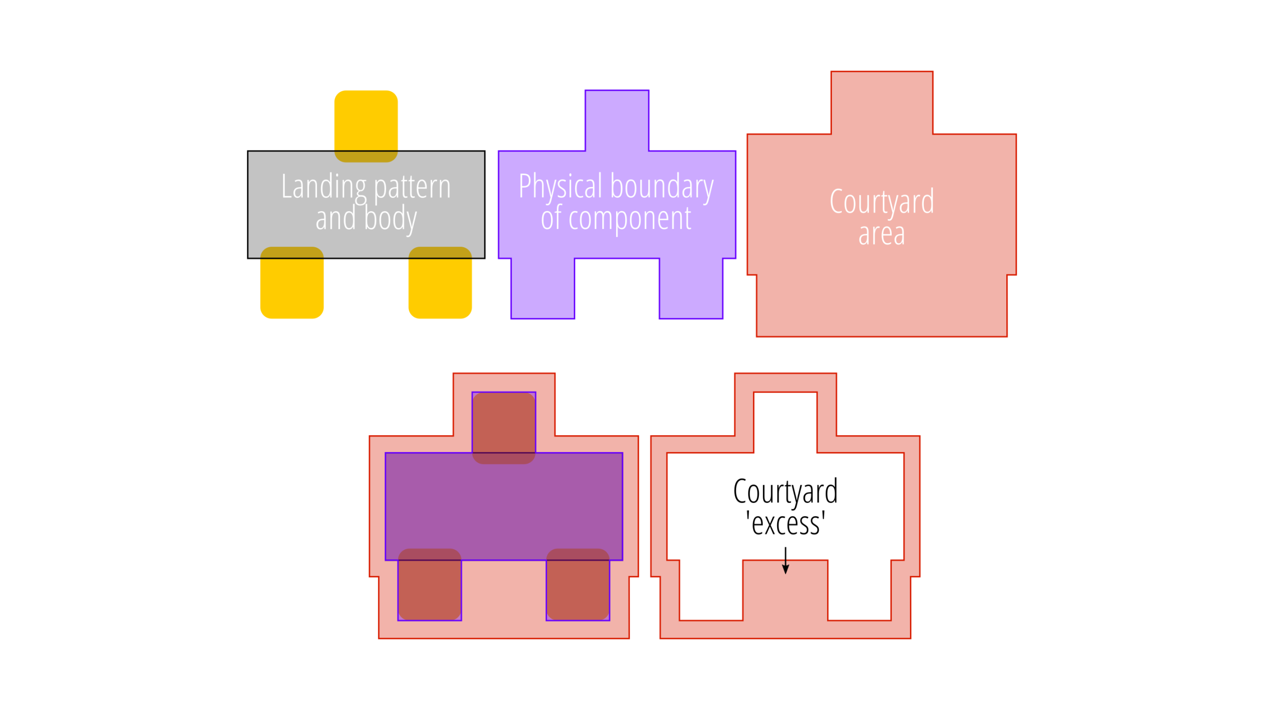 A7-courtyard-overview A courtyard az alkatrész peremének fizikai határától mért távolság. A courtyard területe mínusz az alkatrész területe a minimális elektromos és mechanikai távolság az alkatrész körül (courtyard excess).