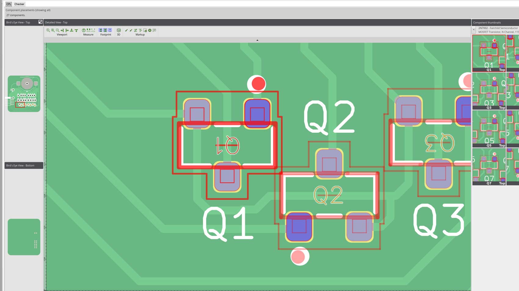 A Visualiserünk figyelmeztetni fogja Önt, amennyiben a PCB nem gyártható, és jelezni fogja, hogy az alkatrészek elhelyezése megfelel-e az IPC courtyard előírásainak. Az újratervezés elkerülése érdekében fontos megbizonyosodni arról, hogy a courtyardok megfelelnek mind a prototípus gyártójának, mind pedig a sorozatgyártó technológiai lehetőségeinek.