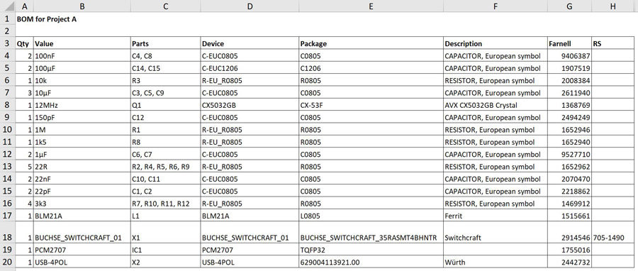 - Sok esetben azonban a CAD rendszerben tárolt adatok nem elegendőek a szükséges alkatrészek beszerzéséhez vagy akár a DFM ellenőrzések elvégzéséhez, ezért ezeket az adatokat figyelmen kívül hagyjuk, és az alábbiakban leírtak szerint külön BOM fájlt kérünk.